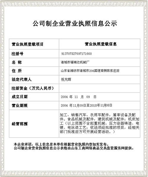 | 現(xiàn)有中,高級技術(shù)人員數(shù)名有多年的設(shè)計與制造畜禽宰殺機(jī)械的理論和經(jīng)驗 | |||||